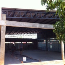 Ampliación de showroon Proyecto y ejecución de obra. El proyecto se realizó siguiendo la estructura ya existente en el lugar. Un total de 400m2 de área construida en la ampliación del local, utilizando los mismos materiales del local existente, se realizó un mix de techo entre estructuras metálicas y losas y vigas pos tensadas de hormigón armado, mamposterías de ladrillos semi prensados vistos, con la particularidad de no tener trabas entre los mismos, para lo cual se utilizaron arriostramientos de varillas entre hiladas de ladrillos, para dar rigidez a las mamposterías. Lo esencial de esta obra, era hacer que la ampliación no se notara como un agregado, si no que fuera parte del show room existente.