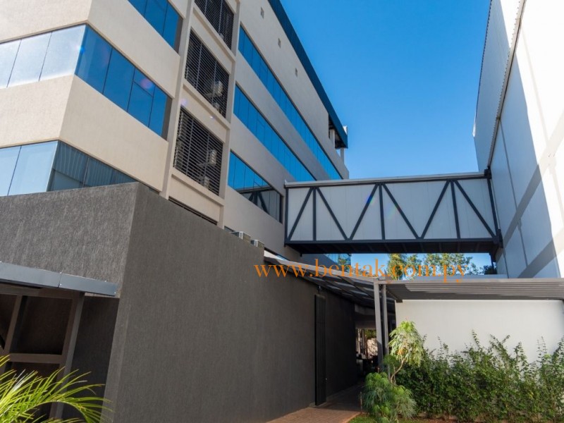 Proyecto y Construcción de 7.000 m2 de edificio administrativo de 5 niveles con estructura de hormigón armado postensado, trabajos de albañilería en general, instalaciones sanitarias, instalaciones eléctricas, terminaciones en general.