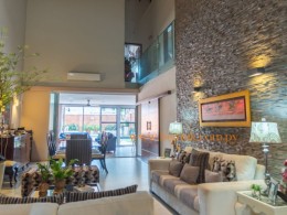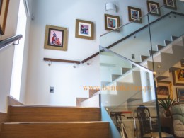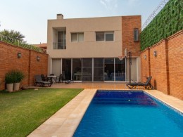 Vivienda de dos niveles Arquitectura de tipo minimalista. Ejecución de trabajos de estructuras de hormigón armado con losas postensadas para obtener mayor alcance de la iluminación natural y albañilería en general. La vivienda posee un estar con doble altura para realzar el ambiente. Cerramientos de carpintería de aluminio. Barandas de vidrio templado de 20mm en planta alta. Instalaciones eléctricas con abastecimiento propio, instalaciones sanitarias, carpintería de madera y metálica. Revestidos símil piedra interior y exterior. Terminaciones de obra.